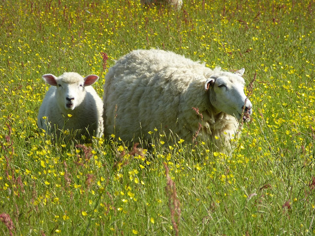 Moving slightly inland, many of the fields around us are full of buttercups and common sorrel. Do you think this lamb (above) likes butter? It has been lovely over the weekend hearing the sound of the sheep drifting over the hedge as we worked in the garden.